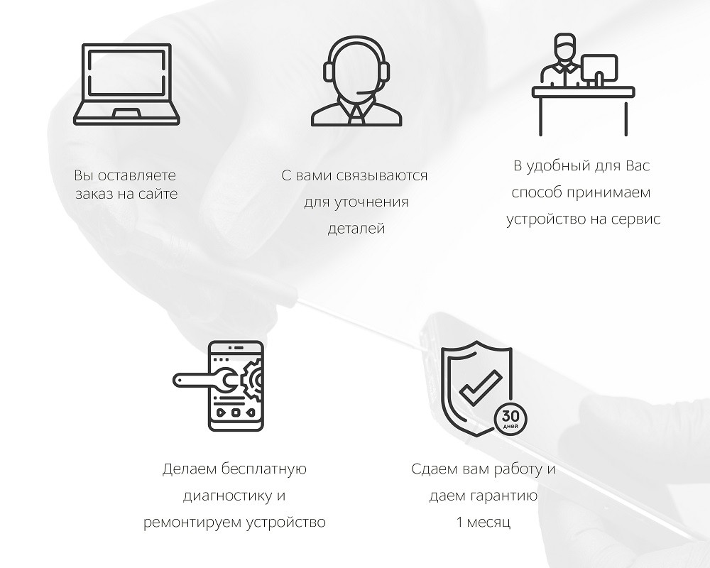 - Удобным Вам способом передаете телефон в наш сервисный центр